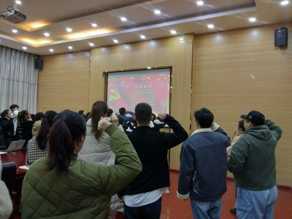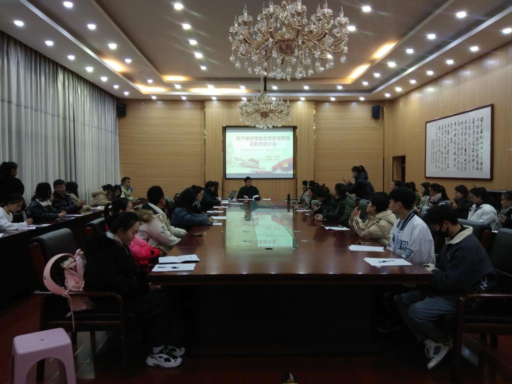 大会开始时党委副书记朱晨刚为杨文韬等16名同志为预备党员大会进行讲话。其次,大会讨论接受杨文韬等16名重点发展对象为预备党员。这16名同学依次向党组织阐述了对党的认识、入党动机、及现实表现。他们表达了自己加入中国共产党的决心并表示今后会继续不断努力提升自己,继续为党组织贡献自己的一份力量。接着,杨文韬16名同志的入党介绍人对其进行提问,在提出意见建议的同时充分肯定了申请人对入党工作的重视。随后,正式党员进行无记名投票并形成最终决议:支部大会同意接收杨文韬等16名同志为中共预备党员。