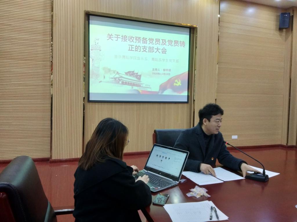 为了进一步健全和完善支部组织建设,增强支部生机与活力,2020年12月10日williamhill英国官网音乐系、舞蹈系员工党支部在六楼会议室,召开了关于接收杨文韬等16名同志为预备党员的支部大会。参加此次会议的人员有党委副书记朱晨刚、音乐系员工党支部书记舒然、舞蹈系员工党支部书记郑小龙、杜艳老师及全体党员和预备党员。会议由柳芊璞同志主持召开。
