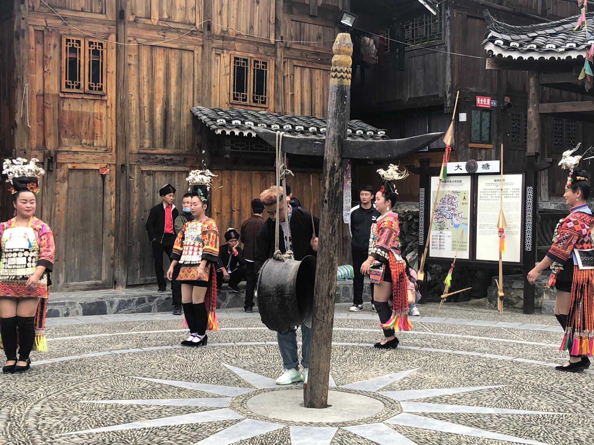 本次采风首先到达短裙苗第一村,进入村庄后映入眼帘的是芦笙广场,紧接着,本地好客的苗家人为采风团演唱了古歌、酒歌、飞歌等种类的苗歌。随后向采风团演示了铜鼓和芦笙的演奏技巧。为了更加深入了解苗族的历史文化,最后采风团到达雷山县大塘镇鸡鸠村观看“西江盛典”大型山水实景演出。