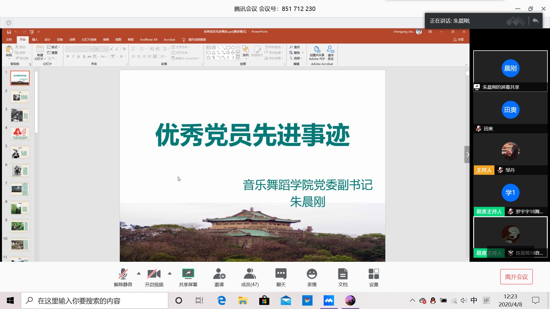 4月8日中午12点williamhill英国官网在腾讯会议举行了第49期入党积极分子专题讲座。由党委书记朱晨刚担任主讲人,并展开了优秀党员先进事迹的专题讲座。