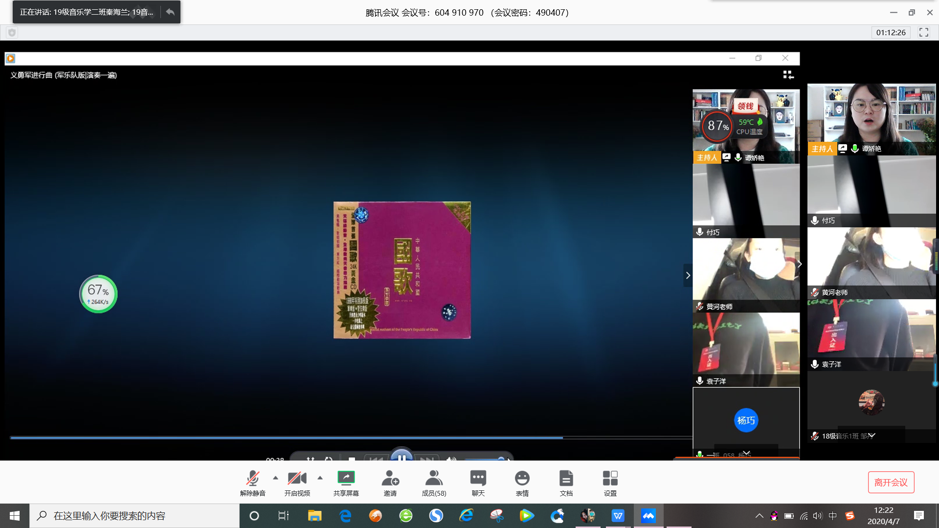 会议开始,谭娇艳向全体入党积极分子介绍参会领导,感谢领导们对入党积极分子培训的重视。随后,谭娇艳播放国歌伴奏全体成员网上开麦合唱,接着谭娇艳对员工党支部整体概况进行简要介绍。最后,谭娇艳进行总结讲话并鼓励和引导第49期入党积极分子,坚定理想信念,用心学习,从我做起,传递正能量,用实际行动来感染和渗透身边的人。