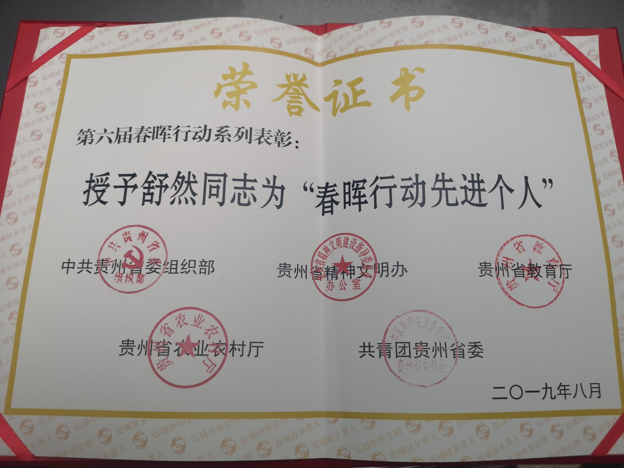 “弘扬中华文明,反哺故土亲人”。11月18日,由省委组织部、省精神文明办、省教育厅、省农业农村厅、团省委联合开展的第六届春晖行动系列表彰大会在遵义市大剧院隆重举行,williamhill英国官网音乐系员工党支部书记舒然被授予“春晖行动先进个人”荣誉称号。