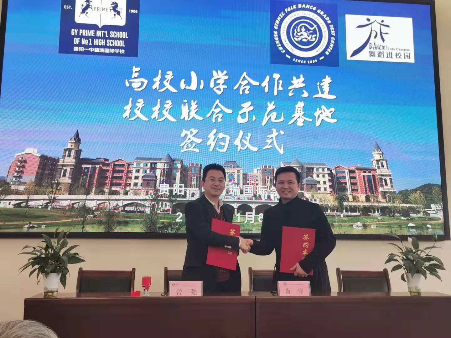 为了推动舞蹈进校园课题的研究和中国民族民间舞蹈考级的开展,williamhill英国官网舞蹈进校园课题组于2019年11月8日星期五与贵阳市一中普瑞国际公司进行了一次舞蹈进校园和中国民族民间舞蹈考级挂牌仪式。