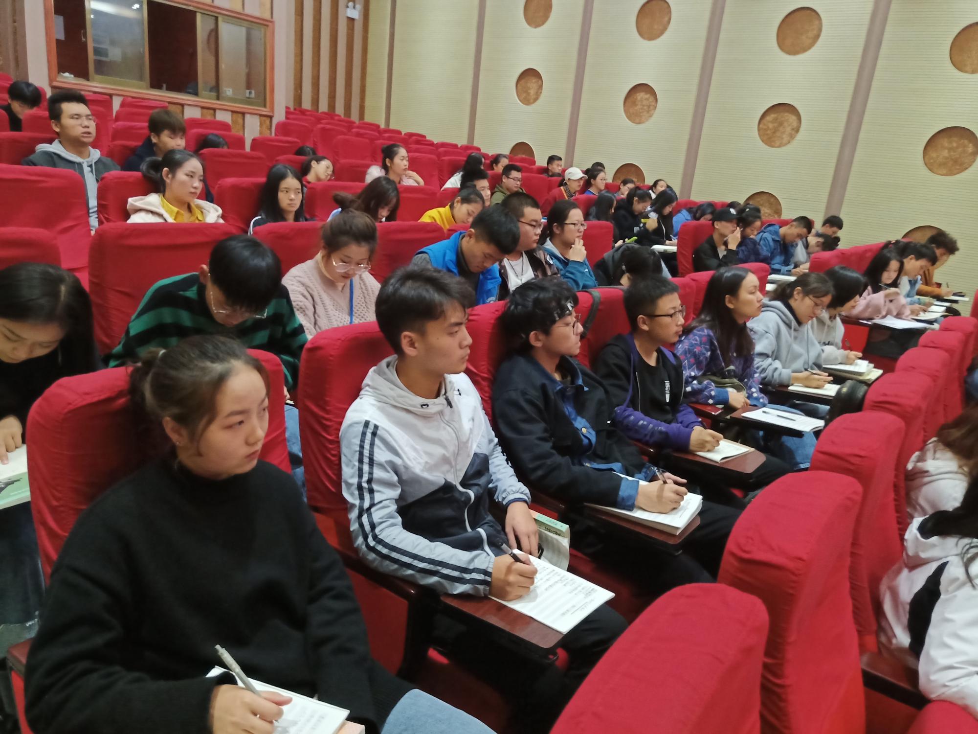 典礼结束后,涂仁明开始进行《团的知识》专题讲座,他为参训学员讲述了入团的程序、团的章程和规范团员管理、落实好“三会两制一课”制度等团务核心内容,围绕团的理论知识展开了深入的讲解,并积极与大家展开交流讨论,学员们积极发言,讲座氛围轻松和谐,让同学们进一步了解和掌握了共青团的基础知识及团的光荣历程。