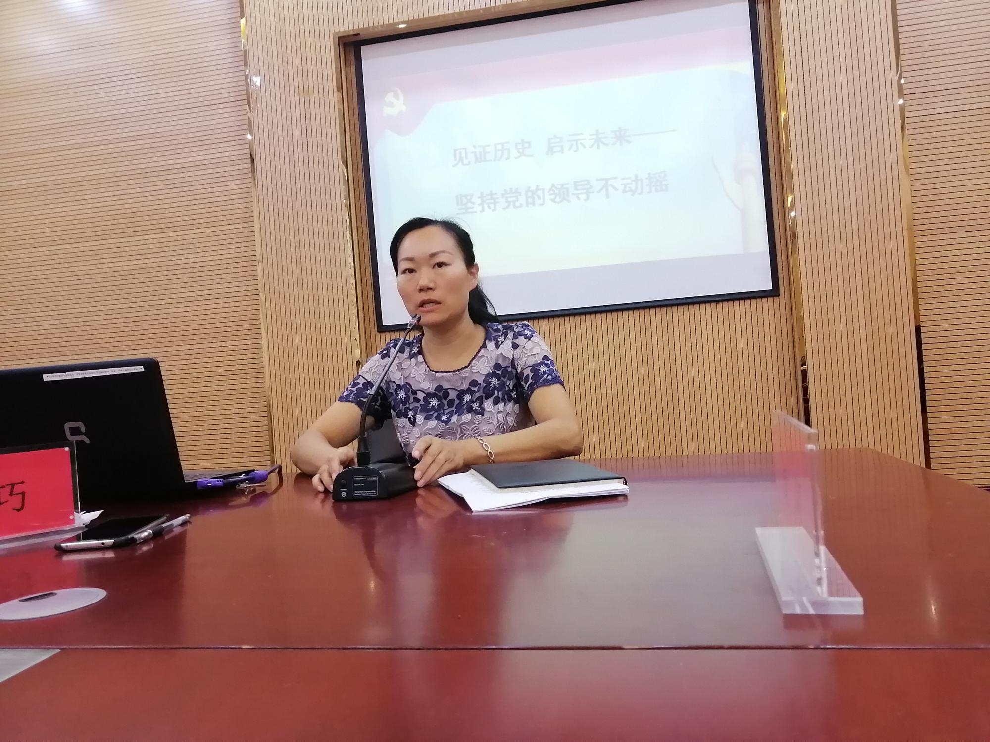 随后,付巧开展了主题为“见证历史,启示未来---坚持党的领导不动摇”的专题讲座,向大家讲述了中国历史中的辉煌和黑暗,并列数中国从建国到现在取得的巨大成就:原子弹氢弹的成功爆炸、交通更发达、住房更宽敞舒适、医疗保障更健全等等,涵盖到社会生活的方方方面。她突出强调“安全感”这个词,并与学员们展开激烈的讨论。