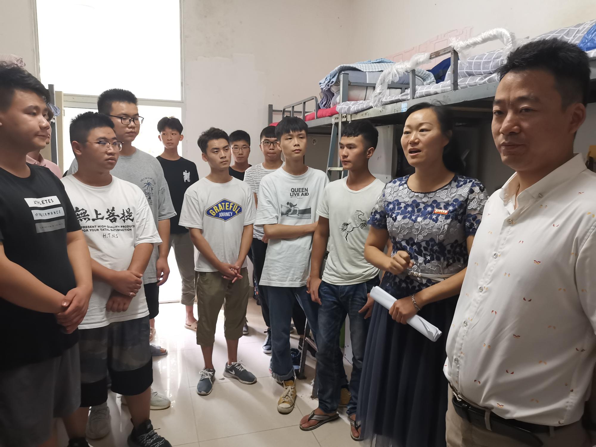 晚上六点,新生报到率已到100%,公司领导和老师进寝室对新生进行了慰问。党委书记付巧寄语新生:新生活新平台是新的起点,是学习和教学的继续,是创新的开始。她希望新生同学们好好把握老员工活,珍惜大学时光,为将来的就业奠定好基础。党委副书记朱晨刚对新生的安全、纪律和近期的教育活动等方面进行了安排和强调。