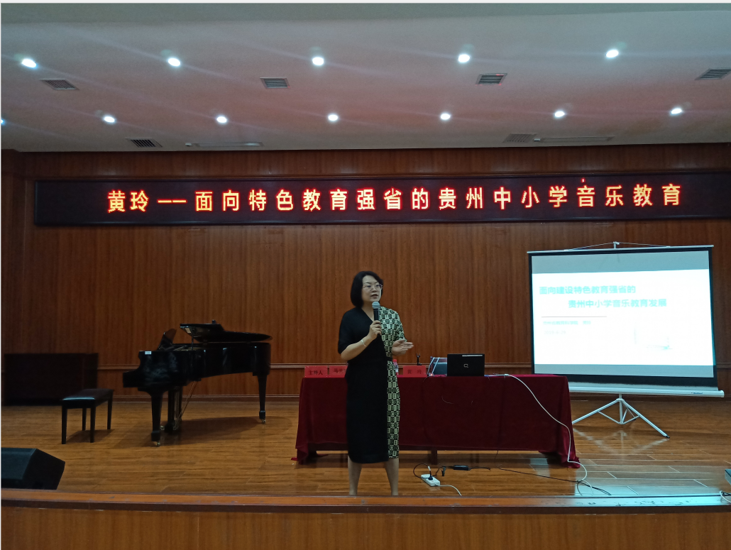 讲课中,黄玲老师强调:“教育是党之大计、国之大计,一个国家和民族的发展和教育密切相关”。紧接着解读了《中国教育现代化2035》《加快推进教育现代化实施方案2018-2022》《贵州省推进教育现代化建设特色教育强省实施纲要2018-2027》等纲领性文件,并提出努力建设一支高素质、专业化、创新型的特色音乐教师队伍。
