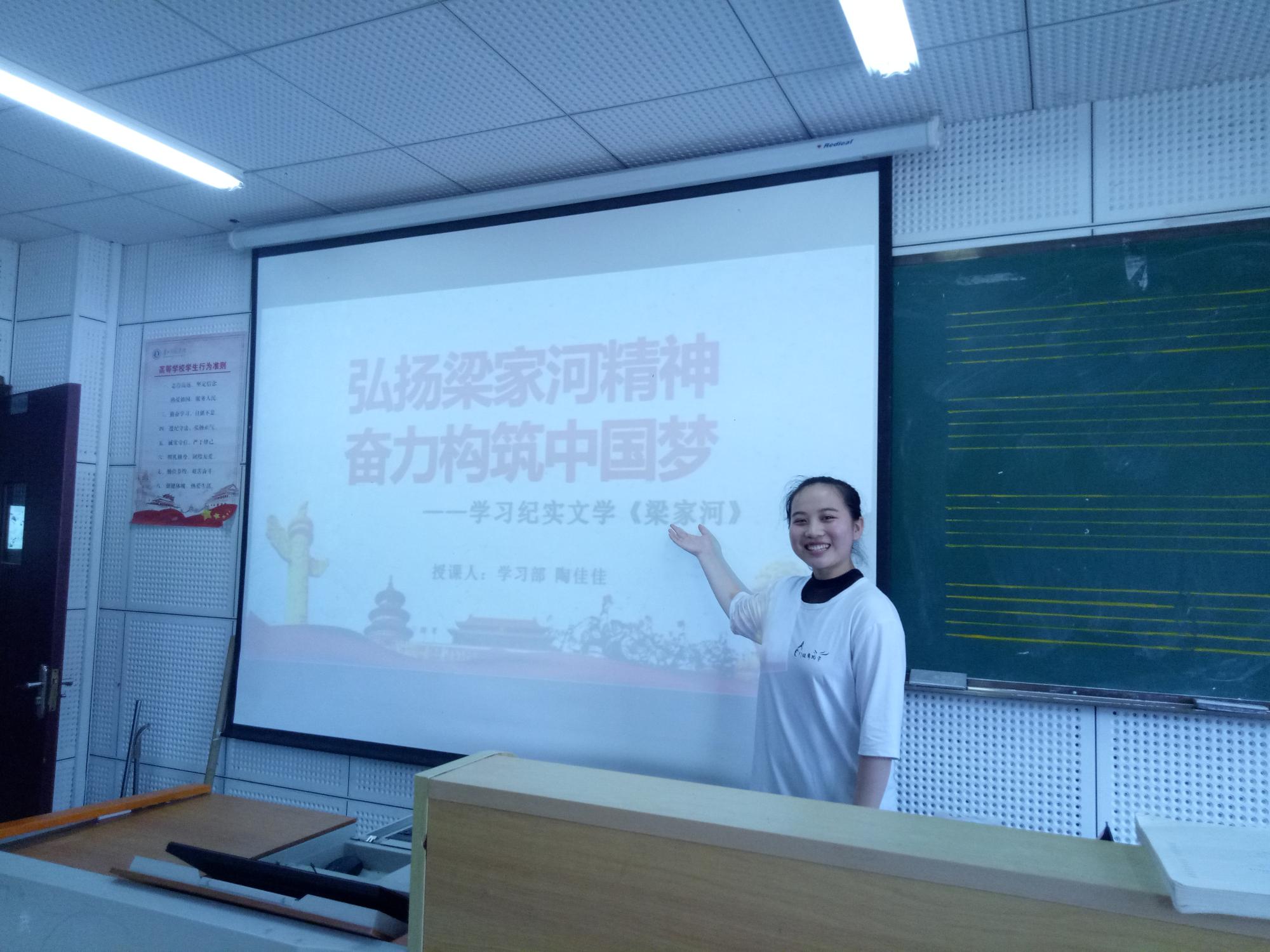 6月11日,williamhill英国官网团委在逸夫楼705教室进行了第十九期业余团校系列培训之专题讲座——学习《梁家河》精神,团委学习部部长陶佳佳担任主讲人。