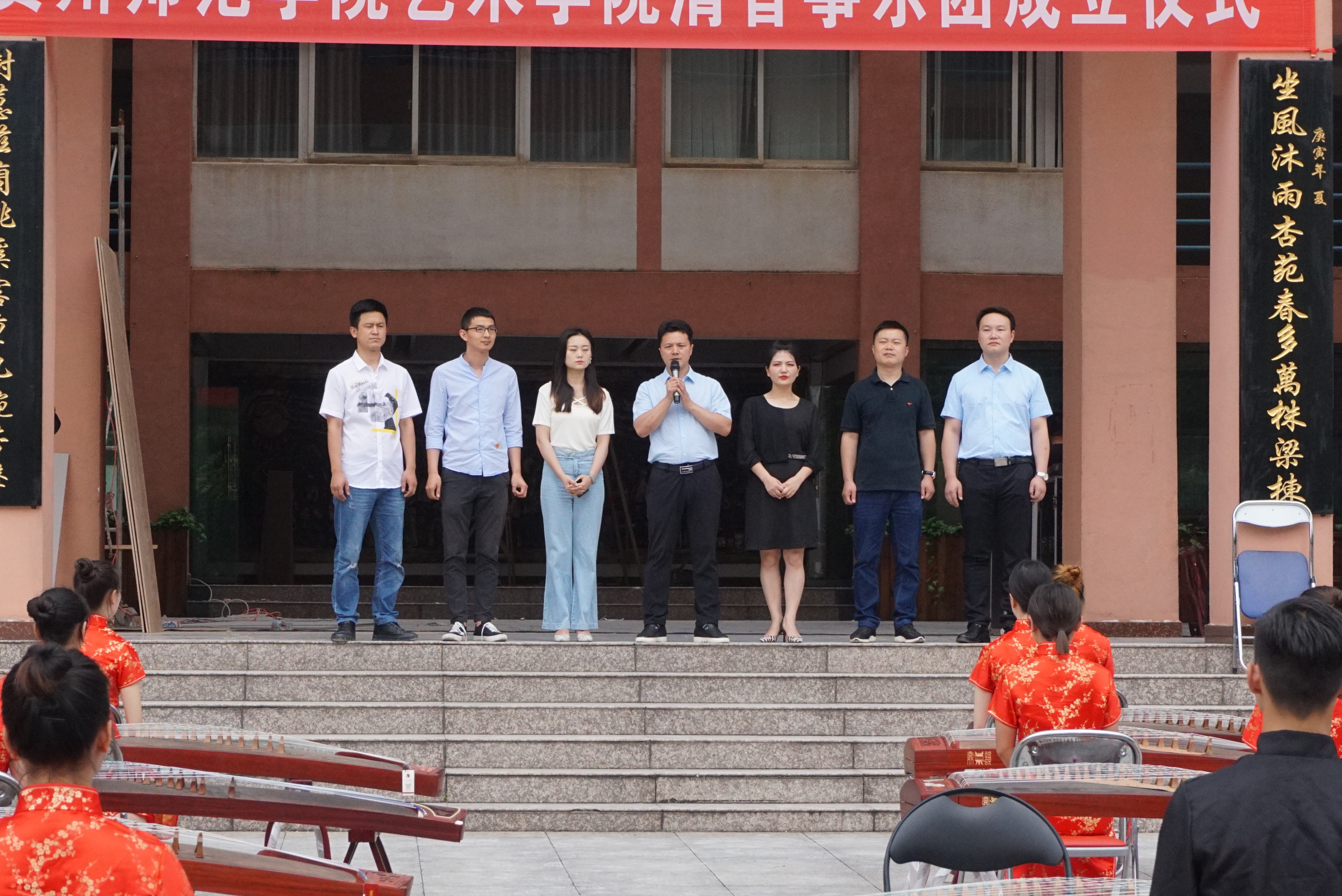 6月29日上午,williamhill英国官网艺术公司清音筝乐团在凤凰广场隆重举行社团成立仪式,艺术公司经理马关辉、经理助理荆彦超、团委书记舒然以专业老师出席了仪式,仪式由筝乐团成员苏周珣主持。