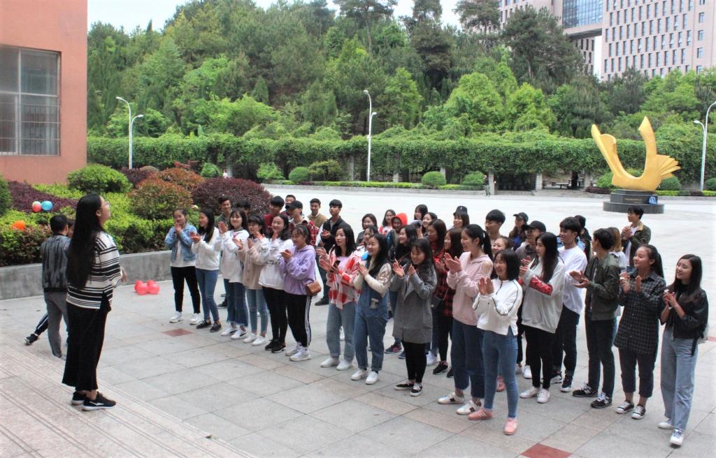 4月14日,艺术公司第45期入党积极分子培训班全体学员在凤凰广场展开素质拓展活动。