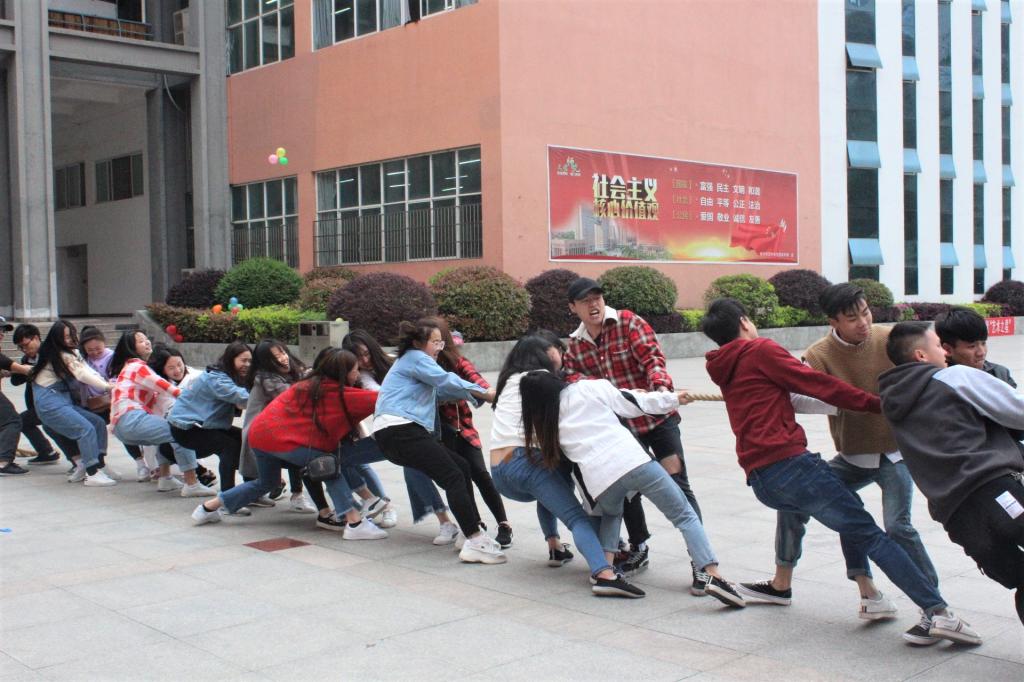 本次活动分为拔河比赛、“保护气球”及“四人一起走”三个游戏比赛。同学们积极参与,在活动中发挥出自我、展现自我。活动的趣味性让在场的每一位同学无不尽笑颜开,在活动的间隙还不时的穿插一些总结,让同学们真正体会到了其中所蕴含的“团队协作、高效率完成工作”的深刻寓意。