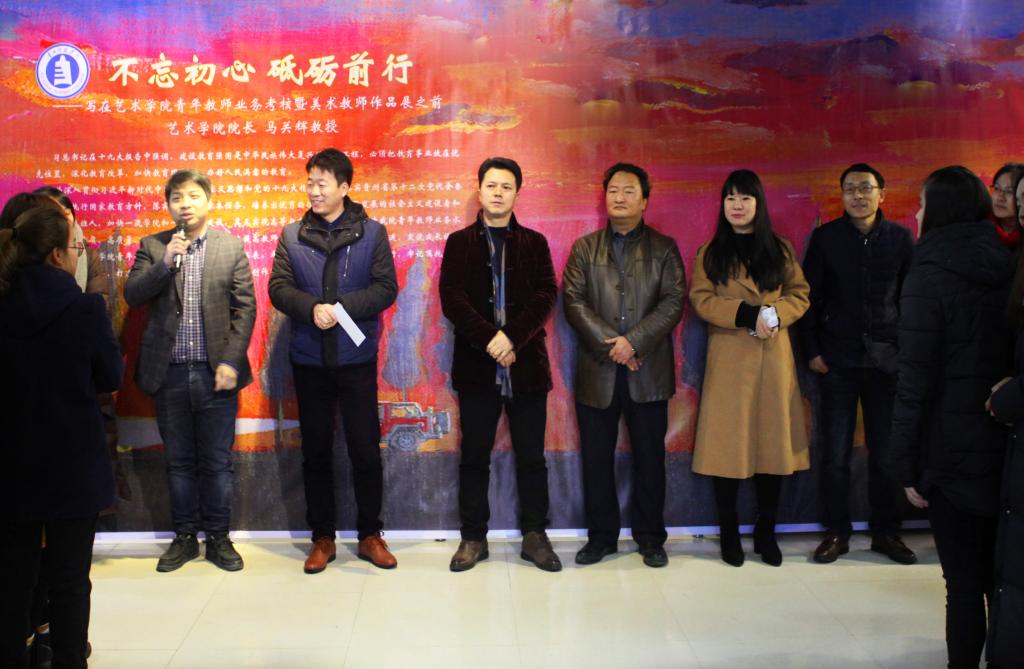 马关辉对开幕式致辞。他表示,要严格执行国家教育方针,落实立德树人根本任务,真正实现高等教育内涵式发展,此次为第一届美术教师考核作品展,目的是在于用作品考核展览的方式来督促教师业务水平的提高,美术学科今后发展要以作品展和研讨会的形式共同完成考核。随后,艺术公司师生进行观展。