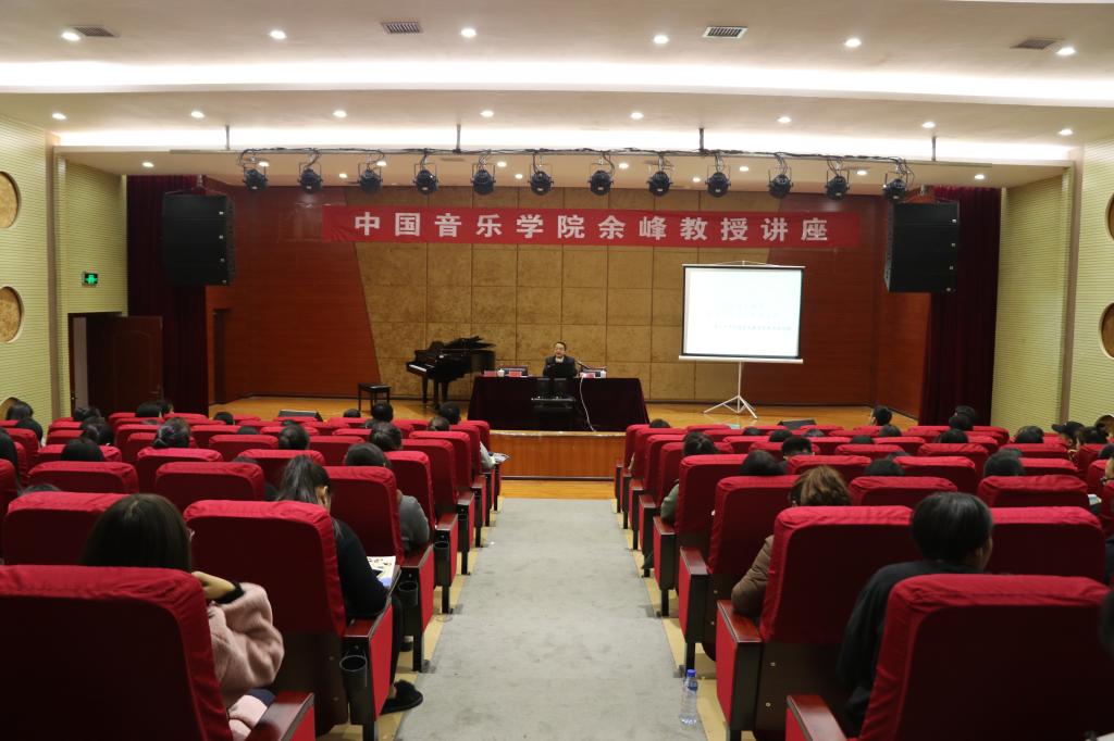 为营造良好的学术氛围,提高广大学子的学习积极性,11月17日,中国音乐公司教授、博士研究生导师、音乐系主任余峰应邀到公司开展讲座,讲座在艺术公司表演厅举行。公司音乐专业同学和音乐爱好者近200人参加了讲座,讲座由艺术公司经理马关辉主持。
