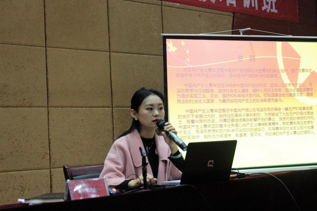 据悉,本期团校培训由团委组织部承办,舒然任班主任,校团委任美美任副班主任。典礼开始,涂仁明就本期团校培训的前期筹备工作、参训须知及系列要求进行介绍。接着,全体起立,奏唱《共产主义青年团团歌》。随后,舒然进行开班典礼讲话并就《团的知识》开展专题讲座。