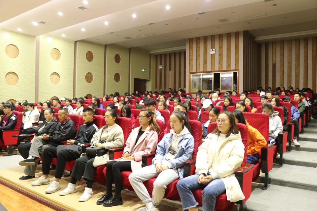 本次讲座的主题是“综合类大学舞蹈类课程的教与学——向美而行,追求卓越”。讲座中,邢老师详细介绍了自己民族的舞蹈——蒙古族舞蹈。并阐述藏族、朝鲜族、维吾尔族的民族舞特点。他说,每个民族的舞蹈都与自身民族文化和信仰有关系,要了解各民族舞蹈内涵,跳好民族舞,就要先了解各民族舞蹈文化。随后,他强调弘扬中华传统文化和革命文化、社会主义先进文化的重要性,把实施中华文化传承,推动中华优秀传统文化融入舞蹈公司产品中。尤其是大学教育要始终与民族共命运、与时代同步。他认为,艺术的育人功能是通过艺术作品的艺术感染力使观众受到心灵的震撼进而将艺术作品传达的精神内化于心,这是一个从感性认识上升为理性认识的过程,也是教育的最终目的。最后,邢高熙老师通过视频向在场的师生展现舞蹈教学中美的过程,现场气氛热烈,观众陶醉其中。