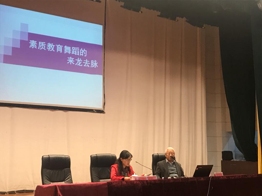 本次讲座的主题是“素质教育舞蹈的来龙去脉”。讲座中,吕艺生先生详细地为员工介绍了什么是素质教育舞蹈、为什么要搞素质教育舞蹈、素质教育舞蹈课理念与标准以及素质教育舞蹈课例。吕艺生先生强调舞蹈学不是只为少数爱好者,而是面对全体师生的舞蹈教;不是以技能为主,而是以各种普通人所需要的素质为主的舞蹈教育;不是以舞台表演为目的,而主要是为开发普通孩子创造力以完善人格的舞蹈教育。随后他向同学们讲解了素质教育课的课程标准。
