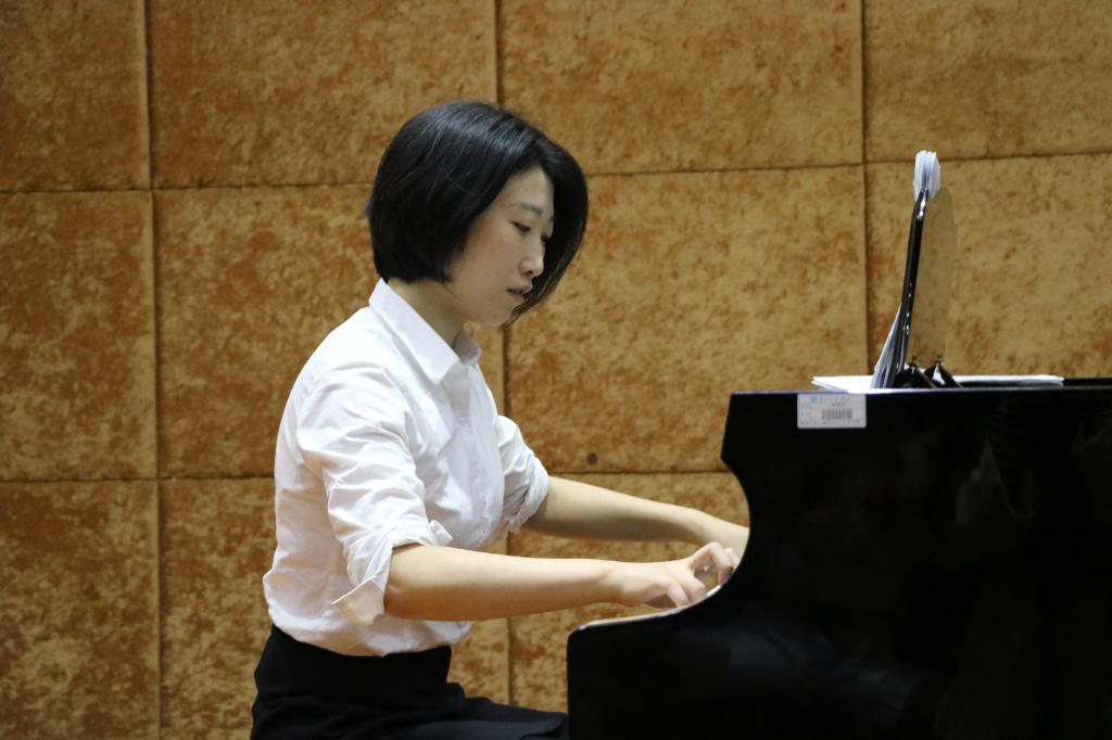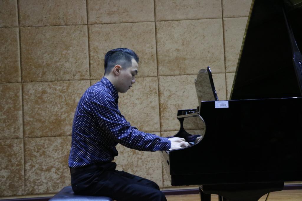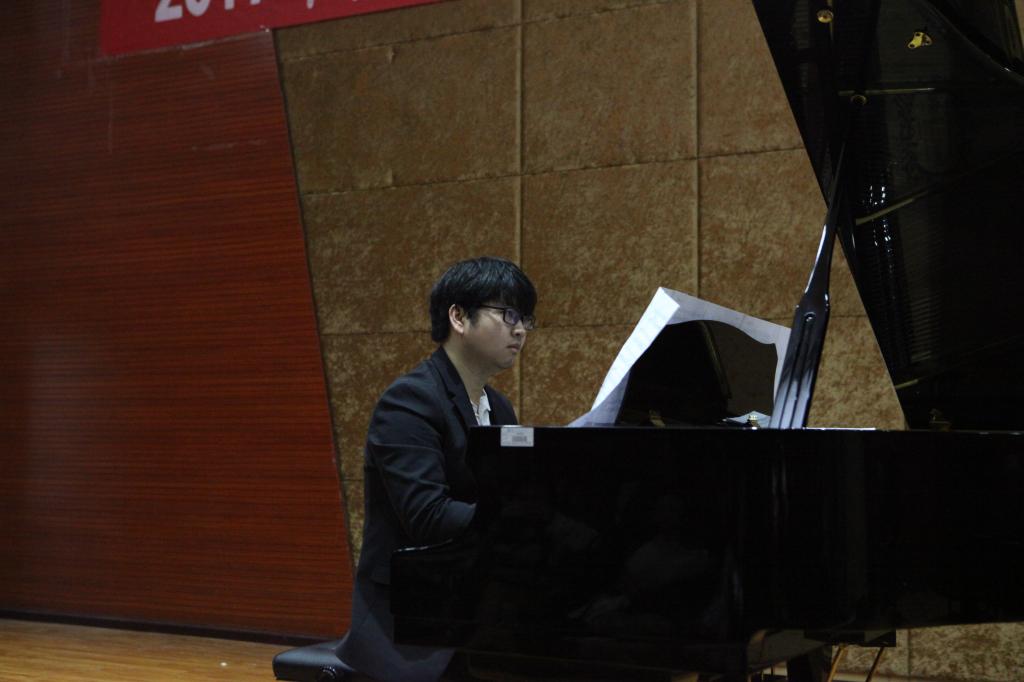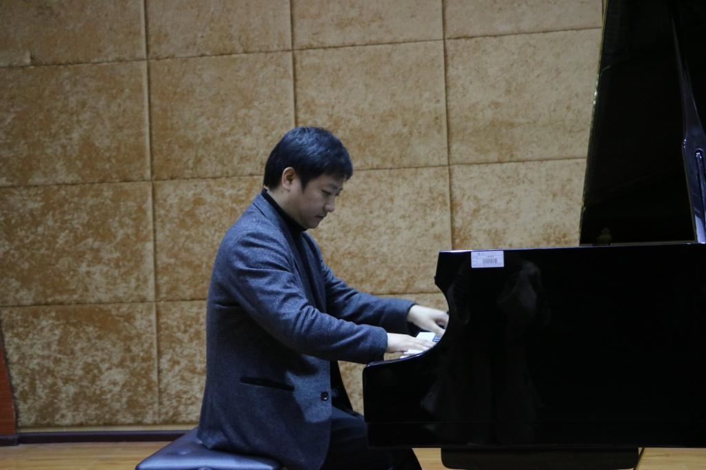 音乐会开始,张锦老师弹奏的《g小调前奏曲》以低沉的低音瞬间将全场师生引入境界。音乐优美的旋律,深邃的内涵博得了在场同学的阵阵掌声。紧接着《皮黄》、《埃斯坦庄园的喷泉》、《第一叙事曲》、《匈牙利狂想曲》、《春江花月夜》、《月光》等着节目轮番上阵,将音乐会推向高潮。演出最后,王迥乔和杨兴雨以精湛的弹奏技法合奏《黄河愤》《保卫黄河》,振奋人心的音调,响亮的战斗口号,铿锵有力的节奏,给同学们刻画出游击健儿端起土枪洋枪、挥动大刀长矛,在青纱帐里、万山丛中,为保卫黄河、保卫全中国而战斗的壮丽场景,赢得在场观众的阵阵掌声!