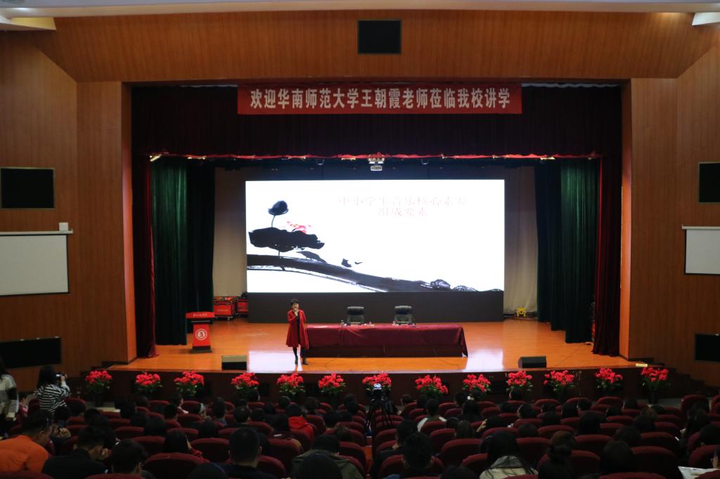 王朝霞以幽默风趣的语言在讲座中与在座师生积极互动,为员工详细介绍音乐教学活动中的要点与关键。为了使同学们更深入的了解音乐教学,她播放视频并逐一讲解,提出音乐教学中出现的问题、有关音乐专业的学术问题引人深思,让同学们受益非浅。