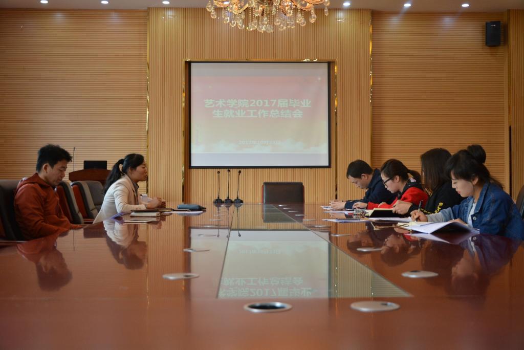 10月27日,艺术公司在六楼会议室召开2017届毕业生就业工作总结大会。艺术公司党委书记付巧、党委副书记朱晨刚及2017届毕业生辅导员参加了会议。