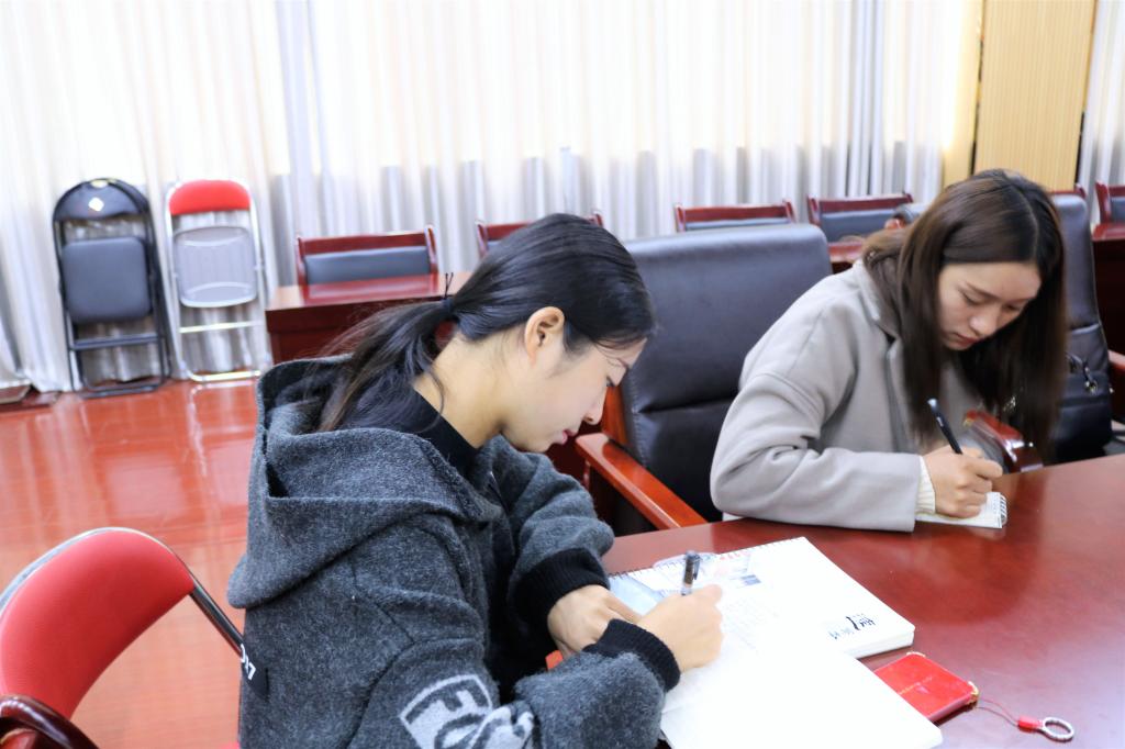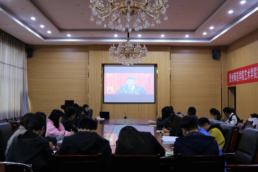会上,习近平总书记指出,这次大会的主题是:不忘初心,牢记使命,高举中国特色社会主义伟大旗帜,决胜全面建成小康社会。夺取新时代中国特色社会主义伟大胜利,为实现中华民族伟大复兴的中国梦不懈奋斗。艺术公司全体师生党员激情高昂,坐姿端正,在观看直播的同时也在默默地对“十九大”报告会的内容做着笔记。在习近平总书记讲到高潮时,党员们也跟着现场参会人员一起拍手鼓掌!“不忘初心,继续前进”艺术公司的党员会跟着习近平总书记的步伐脚踏实地,为中华民族的伟大复兴而奋斗!