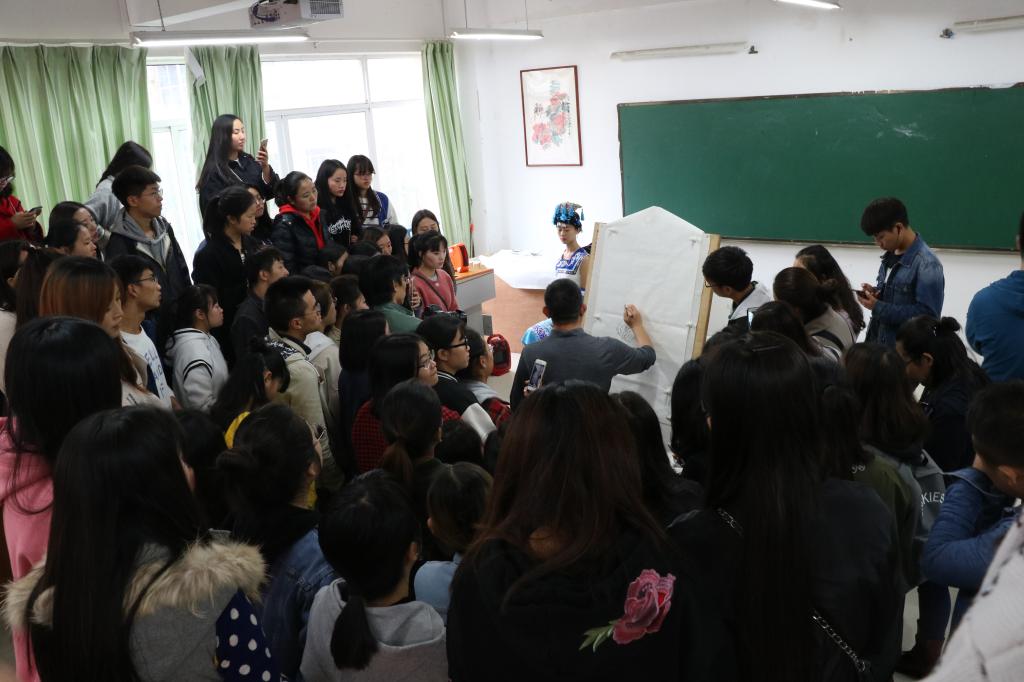 随后在逸夫楼中国画教室,王万成为艺术公司师生进行了现场水墨人物画写生示范,向员工们更直观地展示了中国水墨画的美。同学们也踊跃提出问题,王万成耐心解答并提出自己的见解。