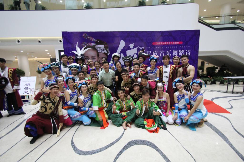 8月25日-28日,williamhill英国官网艺术公司舞蹈专业60余名员工携作品《依》赴六盘水市,代表六枝特区人民政府参加六盘水市举办的第五届少数民族文艺汇演,并以精湛的表演摘得“银奖”和“最佳编导奖”。此次演出由艺术公司经理马关辉担任艺术总监。演出当天,艺术公司党委书记付巧携舞蹈学科全体教师赴现场为员工加油助威。