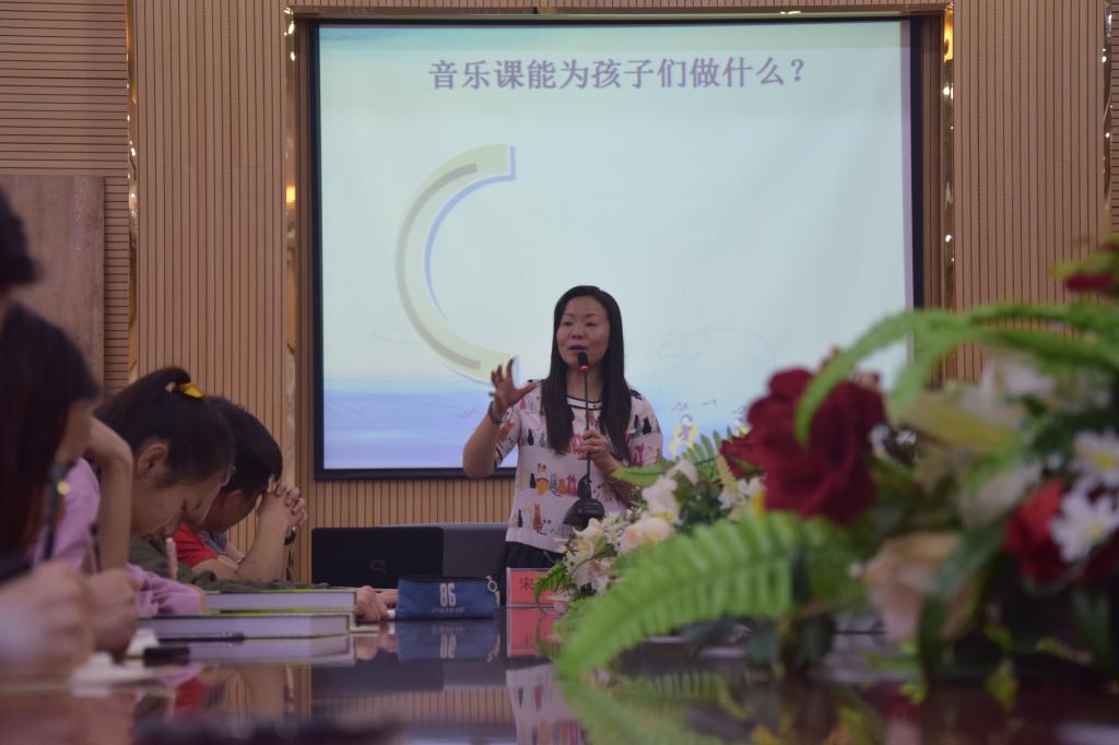 宋婷竹以音乐文化、作为审美体验的音乐、音乐基本能力的构建三个方面为同学们讲述中小学音乐教学思路与方法。强调注重“听”觉基础上的音乐基础能力教学。她在讲座过程中与同学们互动展示了肢体律动教学方法、欣赏了优秀音乐教师的视频、观看了欧洲艺术音乐作品与中国传统作品。讲座中宋婷竹嘱咐将要出去的实习生们:要有选择性的学习课堂老师的优点,并祝愿所有员工在实习中有收获有成绩。