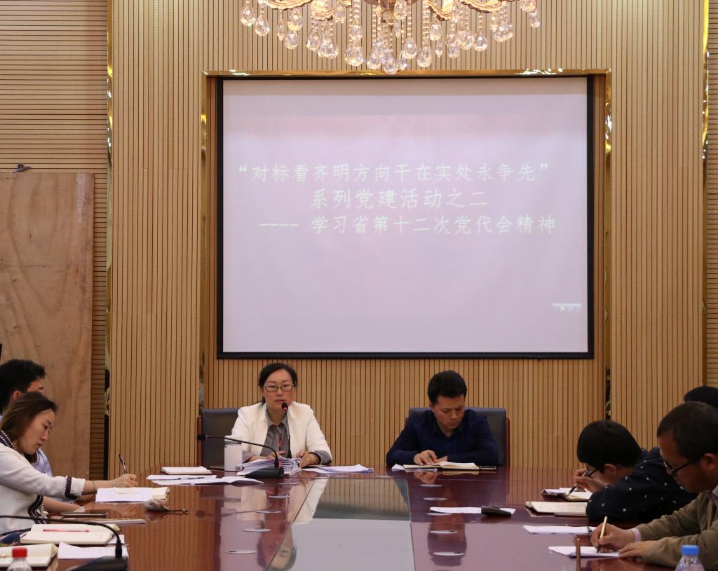 5月19日,艺术公司在公司会议室召开了主题为“对标看齐明方向,干在实处永争先”的系列党建活动——学习中国共产党贵州省第十二次代表大会精神。艺术公司党委书记付巧、经理马关辉、党委副书记朱晨刚和全体教职工、员工党员参加了会议。会议由教工党支部书记陈玉莲主持。