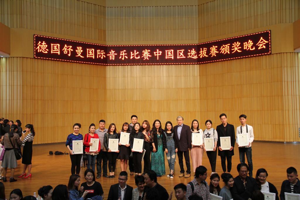 德国舒曼国际音乐比赛是一项国际性音乐赛事,于1956年为纪念舒曼逝世100周年而创设。今年舒曼杯中国区选拔赛是由德国舒曼联盟、德国汉诺威音乐公司、德国法兰克福音乐公司、德国美因茨PCK音乐公司、德国艺马文化、遵义师范公司联合承办。担任此次大赛评委的有来自德国联盟会主席、艺术学博士、英格特.博希女士;德国汉诺威音乐公司著名女高音歌唱家、教育家利特尔.布什女士;首都师范大学声乐教授、国家一级演员、男高音歌唱家杨阳;上海音乐公司声乐教授、国家一级演员、女高音歌唱家于丽红;上海音乐公司声乐教授、歌唱家王凯蔚;贵州大学艺术公司研究生导师、歌唱家沈健坤教授等。