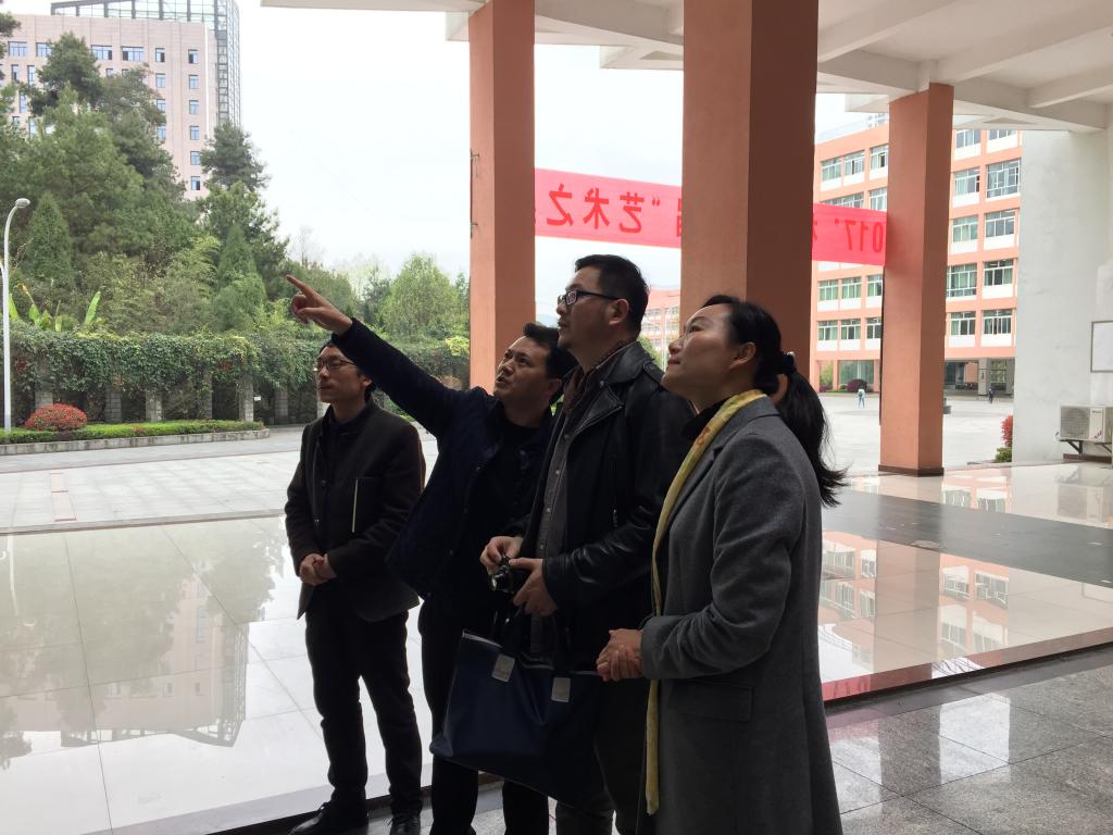 经理助理路统宽、美术学科主任段春华、评建办副公主任杨刚带领杨三军参观了艺术公司的评估材料、员工作品、雪涯美术馆等。