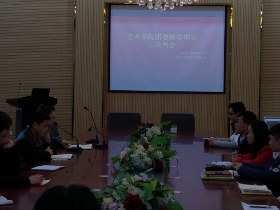 2017年3月8日中午12点,公司团委在艺术公司六楼会议室召开本学期第一次全体员工干部大会,艺术公司团委书记舒然出席,会议由团委副书记敖自江主持。
