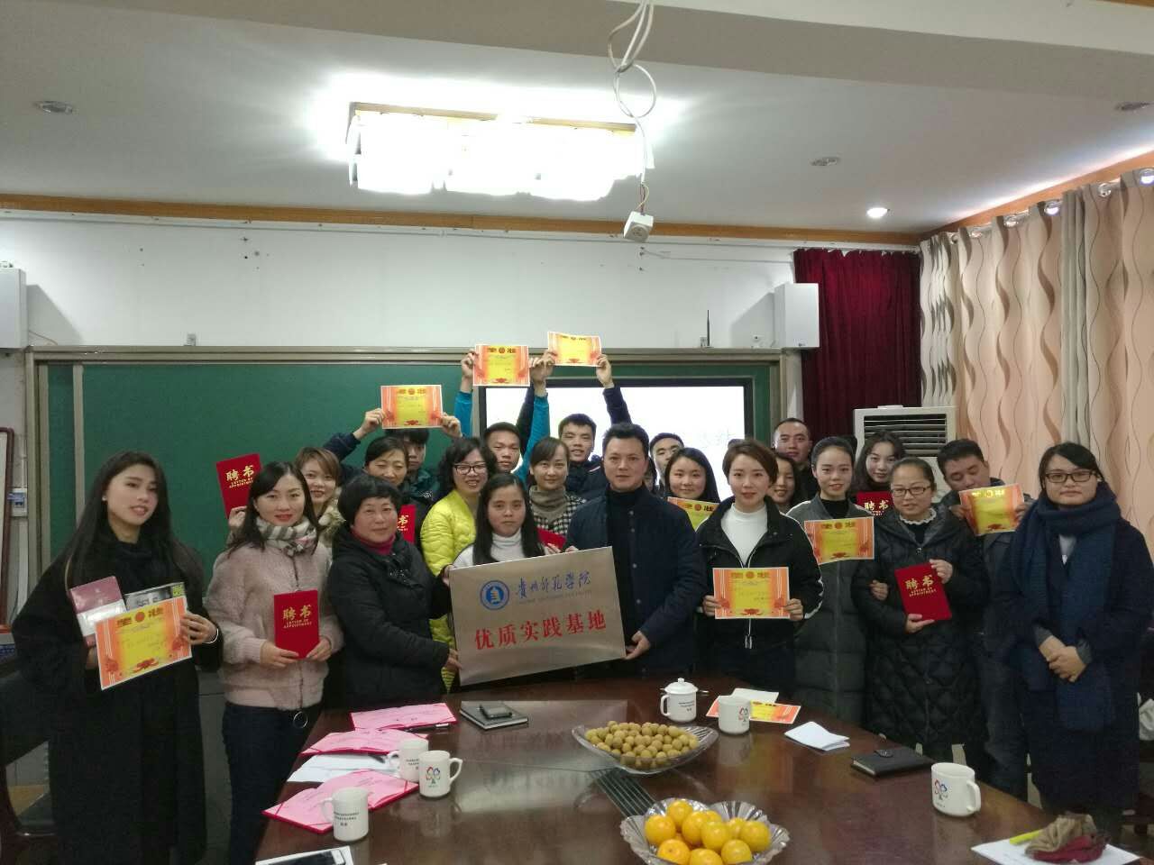 1月4日,艺术公司经理马关辉、实习实践办公室主任王晓芳老师到贵阳市实验四小参加实习汇报总结会,并进行优质实践基地授牌。贵阳市实验四小董事长王碧、教导处主任刘玉霞、教导处主任李长琴、全体实习指导老师以及在贵阳市实验四小实习的公司13名实习生参加实习工作总结会,会议由贵阳市实验四小教导处主任刘玉霞主持。
