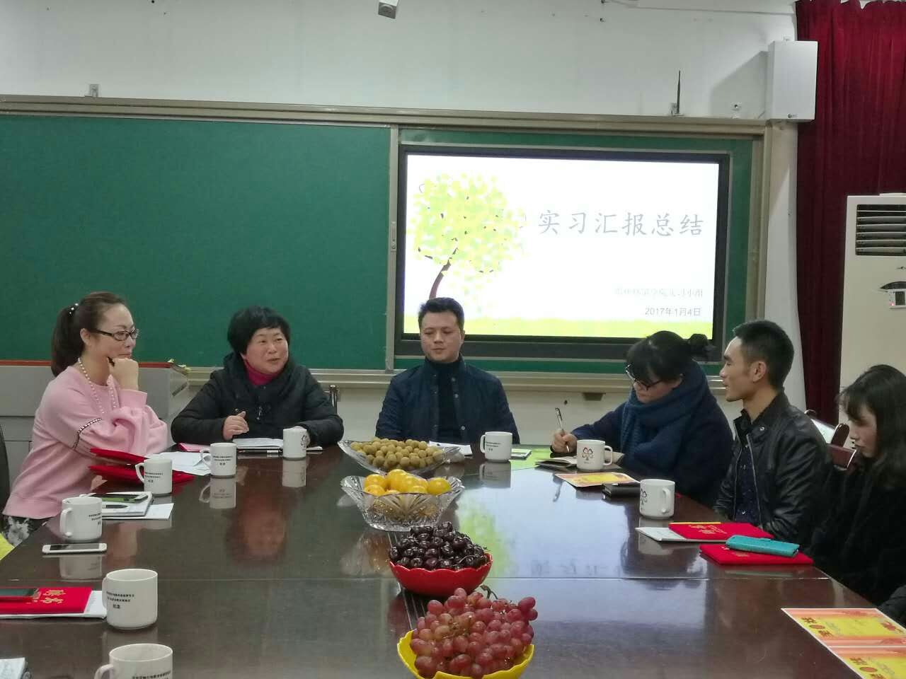 刘主任首先介绍参会领导和老师,对马经理的到来表示热烈欢迎。随后由优秀实习生代表冉晓林进行实习汇报,其他12个实习生也分别谈了自己的实习收获。美术专业员工何玲慧就角色转换,从实习指导教师身上学到怎样处理低年级员工的矛盾、音乐专业实习生就实际课堂的整体把握以及关注差生做了发言。实习生由衷感谢实验四小领导及指导老师对他们严格要求、耐心的指导,也让他们从新认识教师这个职业。全体实习指导教师也分别对实习生做了具体评价。