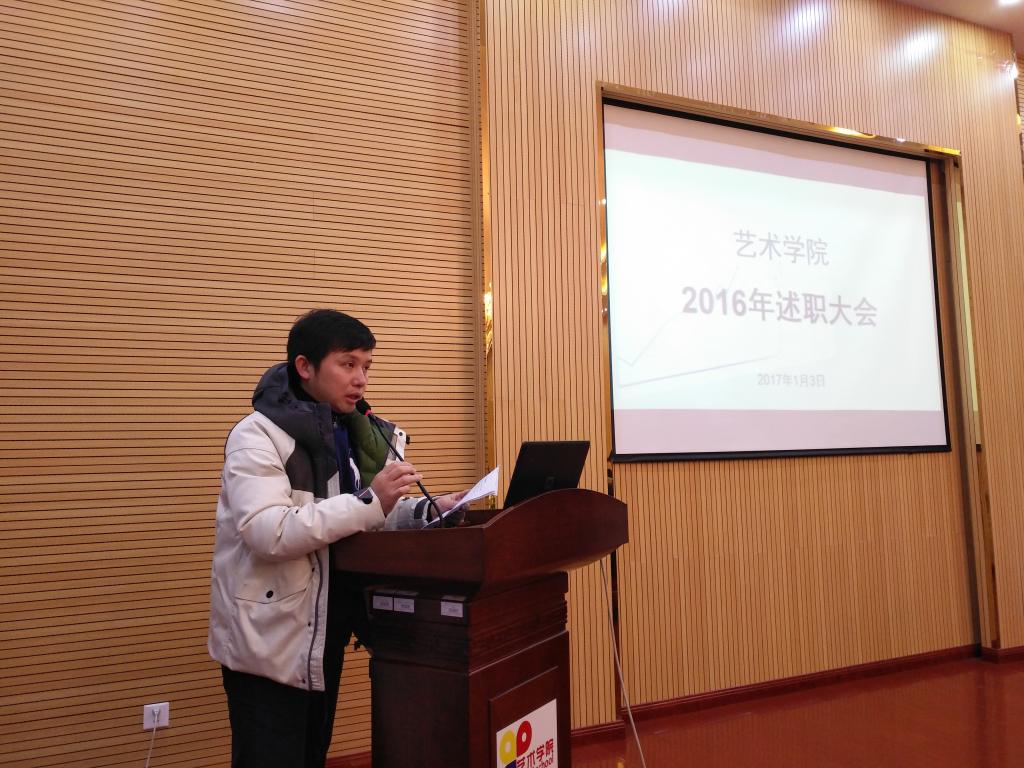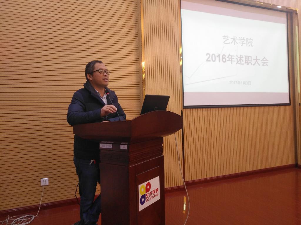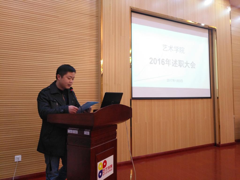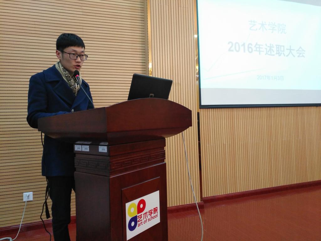2017年1月3日,艺术公司全体教职工在公司会议室召开2016年度年终述职大会。党委书记付巧、经理马光辉、党委副书记朱晨刚出席会议。会议由办公室主任宋建强主持。