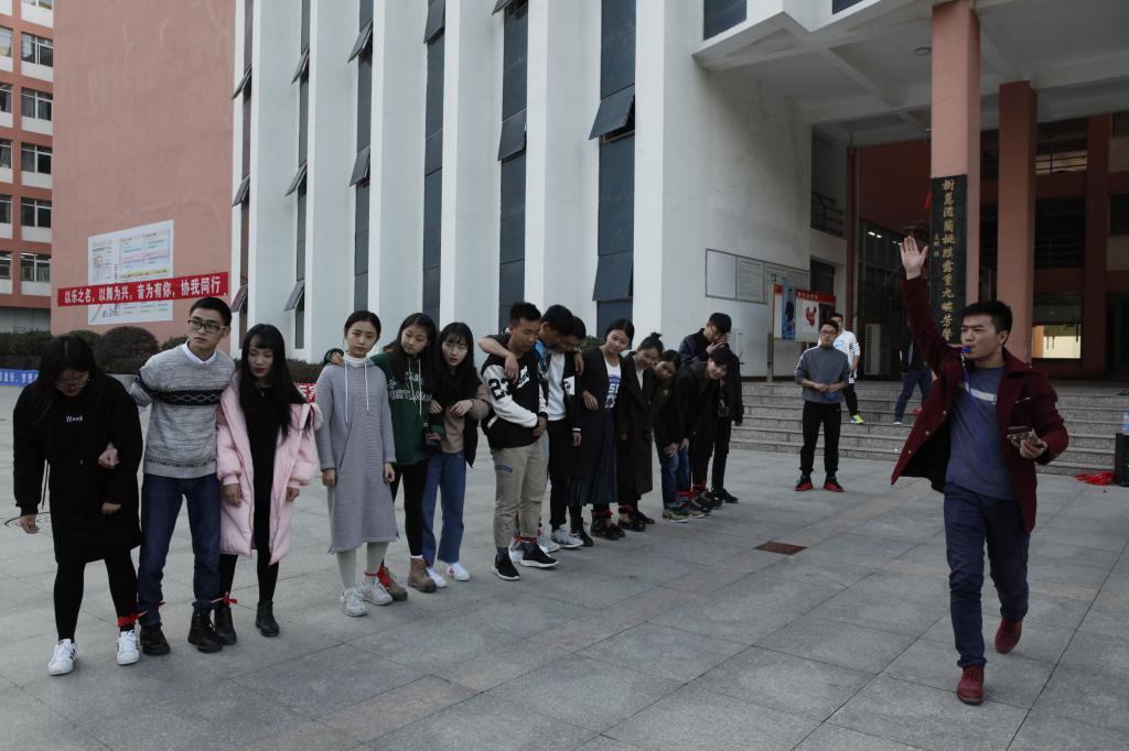 15:40分,游戏活动在凤凰广场开展。同学们积极参与,在比赛中互帮互助。游戏的趣味性让同学们尽笑颜开,在游戏过程中加深了彼此的了解。