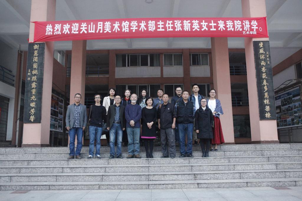 11月23日下午,艺术公司邀请关山月美术馆学术部主任张新英女士为艺术公司美术学科师生做了题为《青年链接的当代版画发展线索——从两个青年版画展谈起》的专题讲座,贵州省版画家朱世伟、李丰、梁练方、周红、吴建荣,李询、杜怡蒙等参加了讲座,讲座由艺术公司经理马关辉主持。
