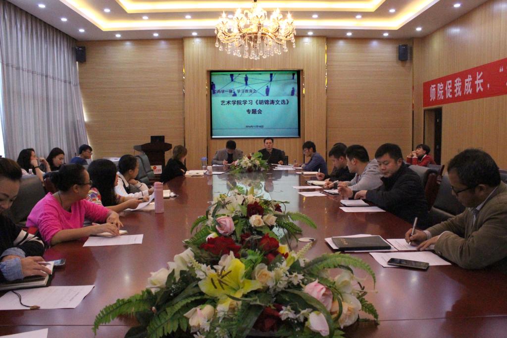 11月18日,艺术公司教职工在公司会议室开展了“关于在‘两学一做’学习教育中深入学习胡锦涛文选”,“深入学习宣传以习近平同志为总书记的党中央治国理政新理念新思想新战略专题会”专题学习会。会议由办公室主任、基层纪检委员宋建强主持。宋建强宣读了公司关于学习系列文件的要求并对文件内容进行了解读。