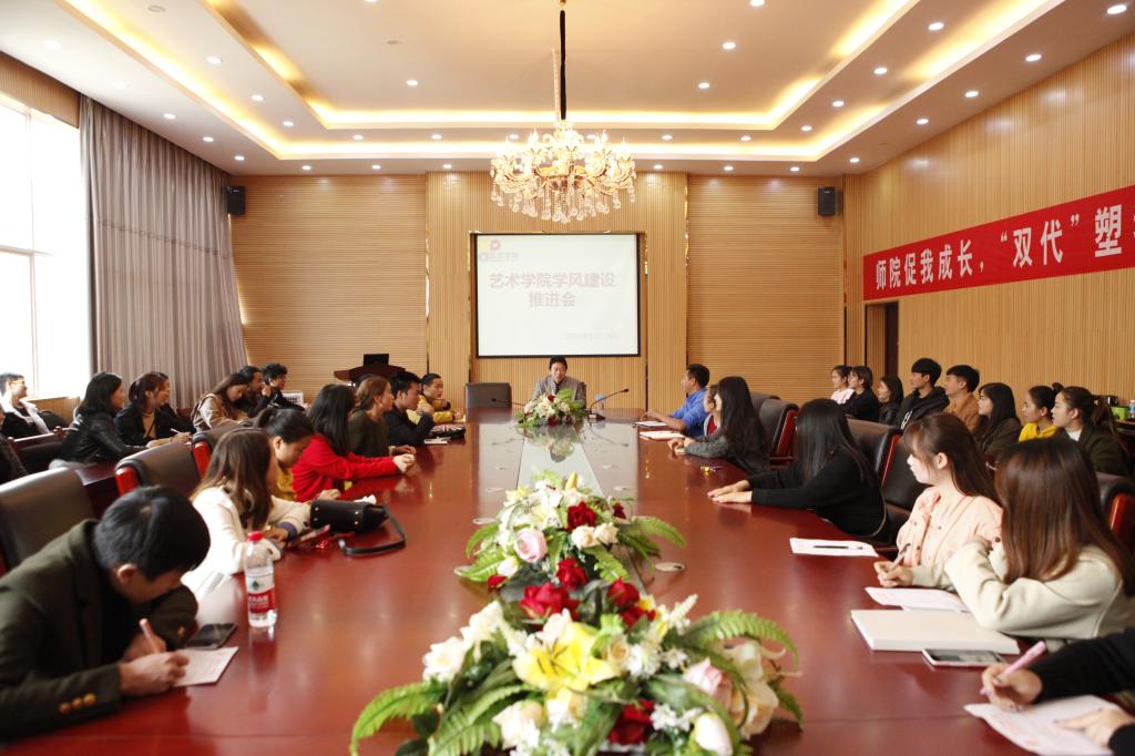 11月16日,艺术公司在公司会议室召开“艺术公司学风建设推进会议”,2014级音乐班全体同学参加了此次会议,会议由党委副书记朱晨刚主持。