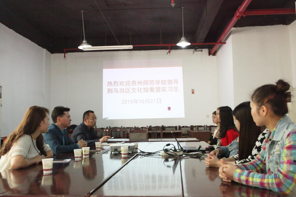 10月21日,williamhill英国官网教务处副处长陈业强、艺术公司党委副书记兼副经理马关辉一行到乌当文化馆看望实习员工,了解员工在实习单位的情况,加强实习过程的管理,解决员工在实习中遇到的困难和问题。