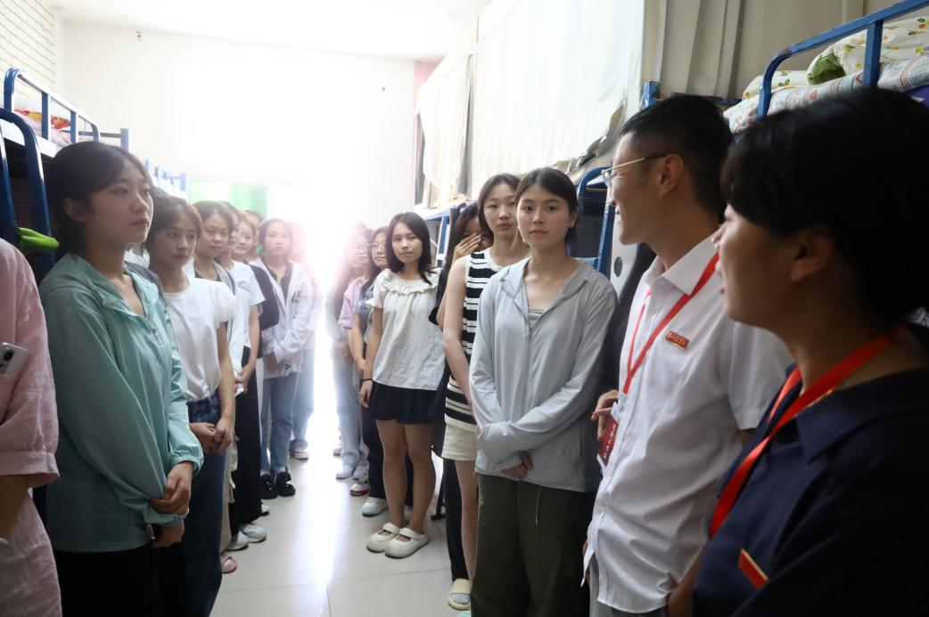 截止到8月31日下午四点,williamhill英国官网应报道196人,实际报到人数为196人。为了了解2023级新生入校后的状况,委书记李佩、副书记朱晨刚、副经理王晓带领新生辅导员班主任,于8月31日下午四点深入员工宿舍,进行走访慰问。