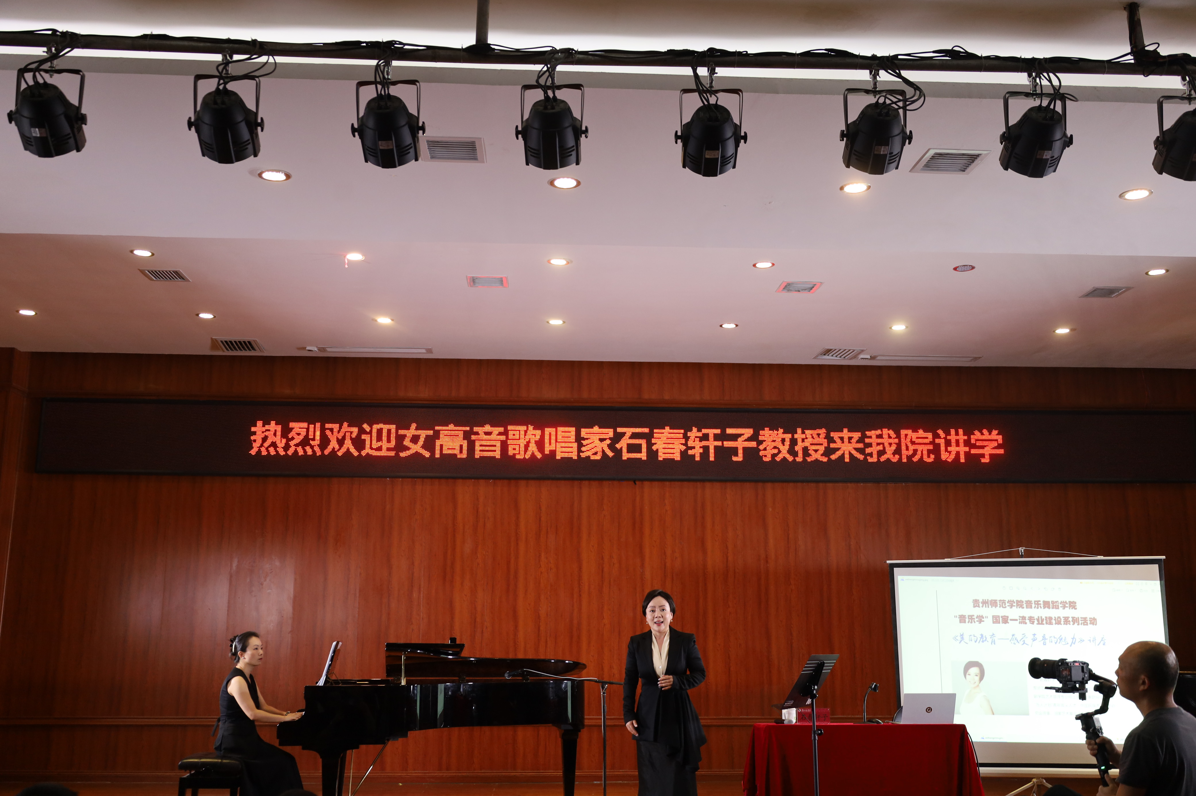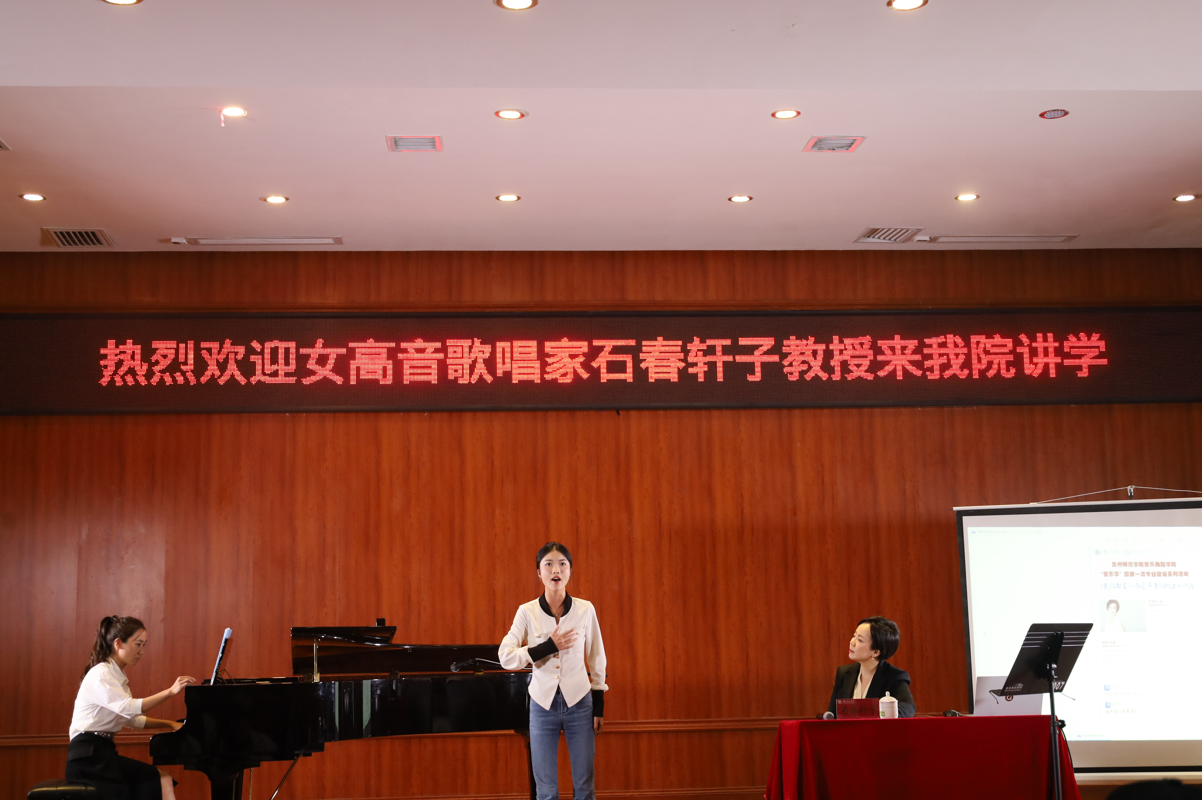 9月8日下午两点半,著名女高音歌唱家、华东师范大学音乐公司教授、博士生导师石春轩子在williamhill英国官网逸夫楼六楼表演厅开展《美的教育——感受声音的魅力》学术讲座。参与此次讲座的有williamhill英国官网马关辉经理、王晓副经理、音乐系主任刘昊佳等老师以及2021、2022级全体音乐学专业员工。