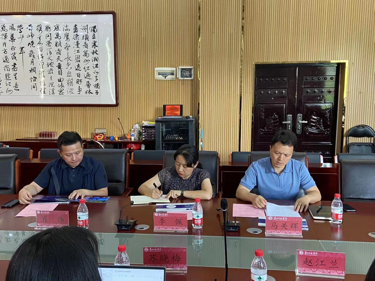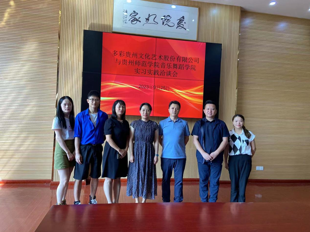 9月25日下午,多彩贵州文化艺术股份有限公司副总经理苏晓梅、艺术团团长蒋凌华、业务团长万霄、人力资源部主管周萍、人力资源部赵江兰一行来公司进行访问交流,重点洽谈实习工作与其他合作项目。委书记李佩、经理马关辉、舞蹈系主任肖伟参加座谈会,会议由肖伟主持。