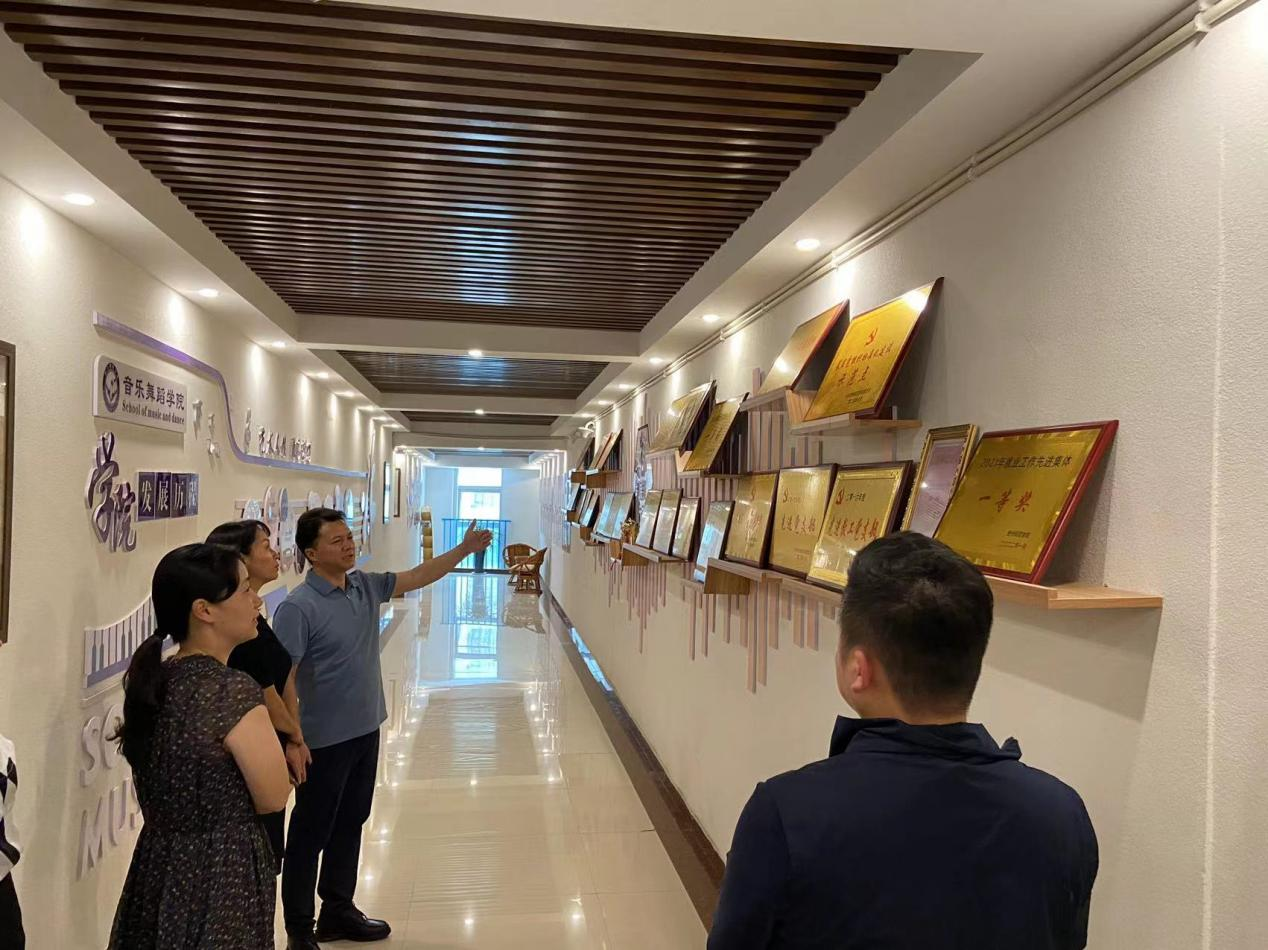 座谈会开始前,马关辉经理带领多彩贵州文化艺术股份有限公司来访人员参观公司,同时讲解公司人才培养理念、培养模式、专业建设、办学业绩等。