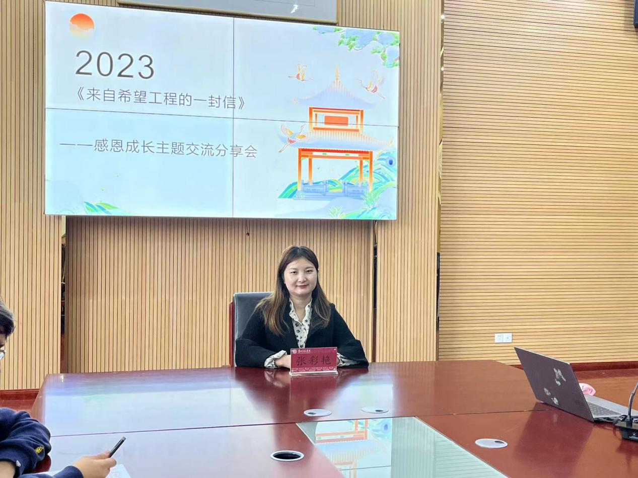 10月12日,williamhill英国官网在六楼会议室组织开展《来自希望工程的一封信》——感恩成长主题交流分享会活动。本次活动由团学老师张彩艳主持,各班团支书、“微光行动·希望工程”——2023体彩旭日助学受资助同学参会。