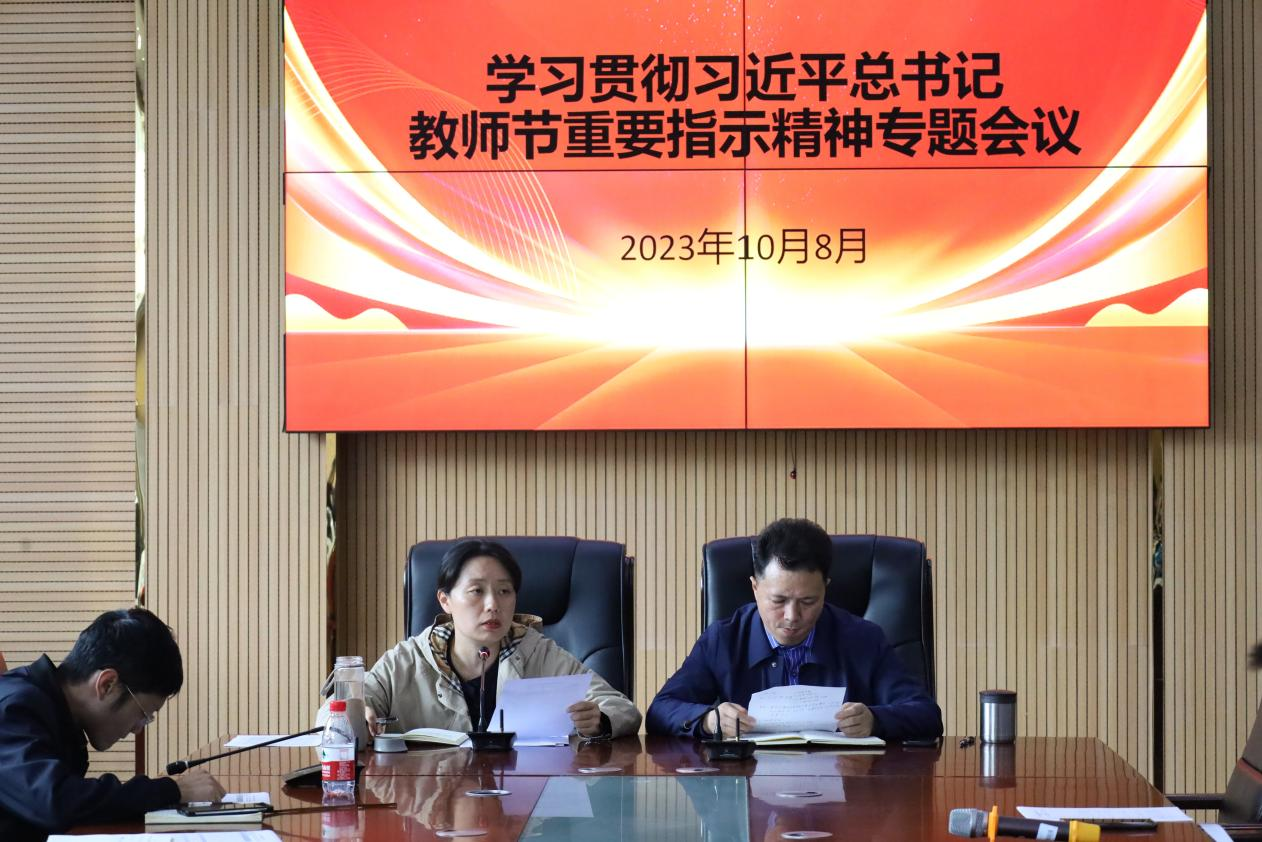 党委书记李佩带领全体教职工学习了《习近平致全国优秀教师代表的信》。她强调,习近平总书记的致信、李强总理的批示,充分体现了党中央、国务院对广大教师的关心和重视,对全国教师是极大的鼓舞。她表示,要深入理解教育家精神的丰富内涵,深入推进教育家精神的贯彻落实,坚持政治引领,工作敬业奉献,潜心钻研业务,做好师德表率。