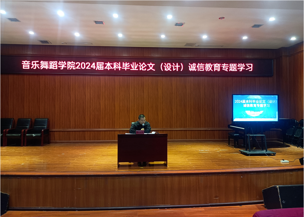根据公司教务处《关于进一步加强本科毕业论文(设计)质量管理的通知》的相关要求,为深化学术诚信观念,营造良好的学术风气,坚决抵制学位论文的抄袭与学术不端行为,并持续提升人才培养质量,williamhill英国官网于3月29日中午13时,在逸夫楼六楼音乐厅举办了针对2024届本科毕业论文(设计)的诚信教育专题学习。此次学习由音乐系副主任袁子洋副教授担任主讲,在校的2020级音乐学、舞蹈学和舞蹈表演专业的毕业生以及2021级理论主修方向的员工参与了此次学习。