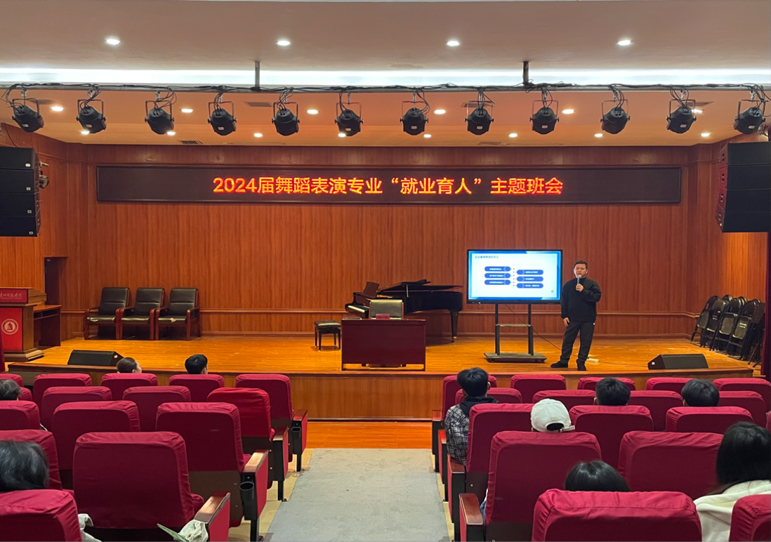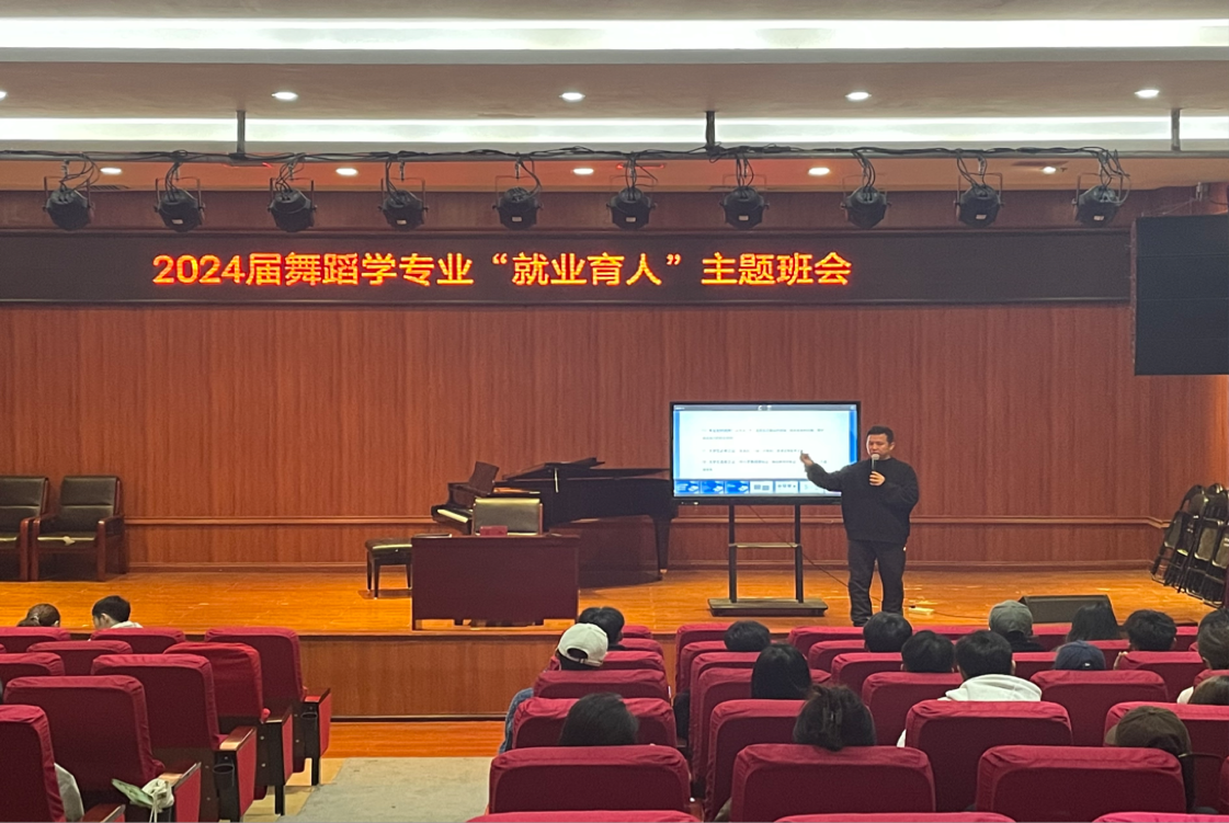 为进一步增强毕业生的就业意识,树立正确就业观念,提升求职能力,4月9日,公司舞蹈系在六楼表演厅召开2024年度舞蹈系春季就业宣讲会。宣讲会以“就业育人”主题班会的形式召开,舞蹈系主任肖伟担任宣讲人,2020级舞蹈学和舞蹈表演专业全体员工参加了宣讲会。