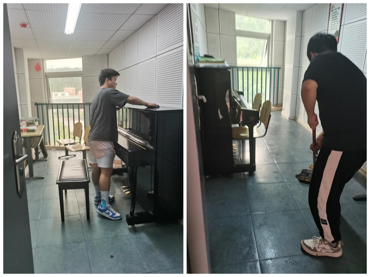 劳动教育是公司实践周活动的重要内容之一,为了提高音乐学专业员工的劳动素养、能够培养员工的动手实践能力,同时也为了帮助员工养成良好的品质和习惯,4月18日下午,音乐系组织全体员工参加了劳动实践活动,活动内容是全面清理、打扫所有的音乐实训室,包括178间钢琴实训室、舞台表演实训室、数码录音实训室、合唱实训室以及各班卫生责任教室,劳动实践结束后,公司组织劳动成果检查小组,对各实训室和教室的卫生进行了全面检查。