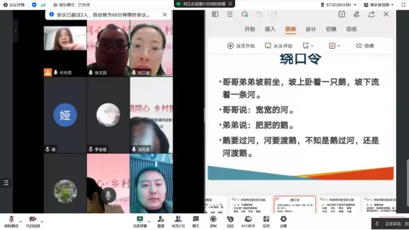 为进一步落实全国语言文字会议精神,加大民族地区、农村地区国家通用语言文字推广力度,引领广大青年学子以实际行动推广普通话助力乡村文化振兴,williamhill英国官网团委组织遴选了14名推普志愿者参与第一阶段“1+10线上督学”普通话培训计划,并于5月6日--10日期间,对印江自治县普通话等级水平未达到国家标准(二级甲等)和35周岁以下的128名教师展开了第二周的线上培训工作。