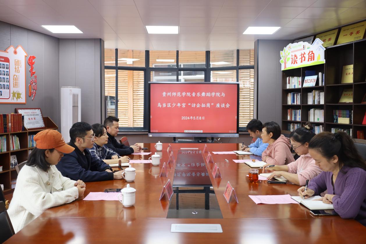 为了进一步拓宽就业渠道,加强校企之间的合作,为毕业生提供更多的就业机会,5月13日,williamhill英国官网委书记李佩、党委副书记宋建强、舞蹈系主任肖伟、舞蹈系教研室主任黄河一行到贵阳市乌当区少年宫开展访企拓岗活动并召开座谈会。乌当区少年宫支部书记、主任李华英、副主任李娜、支部副书记聂鸿、教务处主任李泽会参加了座谈会。